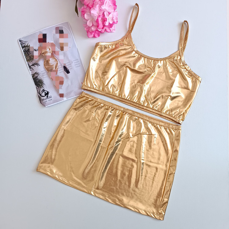 😍دو تکه دیسکویی خارجی هست یه نیمتنه داره و یه دامن کوتاه 😍