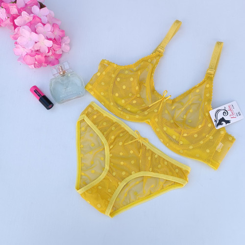ناموجودست شورت و سوتین زنانه توری فنردار لمون