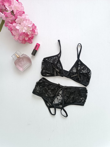 ست شورت و سوتین زنانه توری فنردار بیوتی but